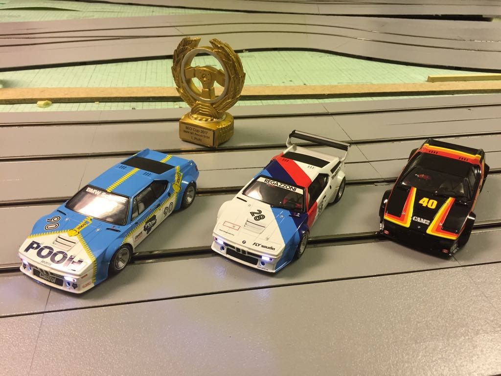 Zum Abschluß des Rennabends durften dann noch die BMW M1 ran. Mein Reggazoni hatte schon am Sonntag nach wenigen Runden im Vorbereitungstraining einen Motorschaden, so dass ich dankend auf einen Motor zurückgegriffen habe, den Denis mir geliehen hat. Danke dafür! Trotzdem war mein M1 eine Wundertüte, wie der läuft war vorher nicht abzusehen. Er war okay, aber Marco fuhr viel zu konstant um ihm gefährlich zu werden. Zwei Siege zeigten seine gestrige Dominanz in der Klasse deutlich, jeweils gefolgt von mir, Denis schaffte beide Male nur einen dritten Platz.