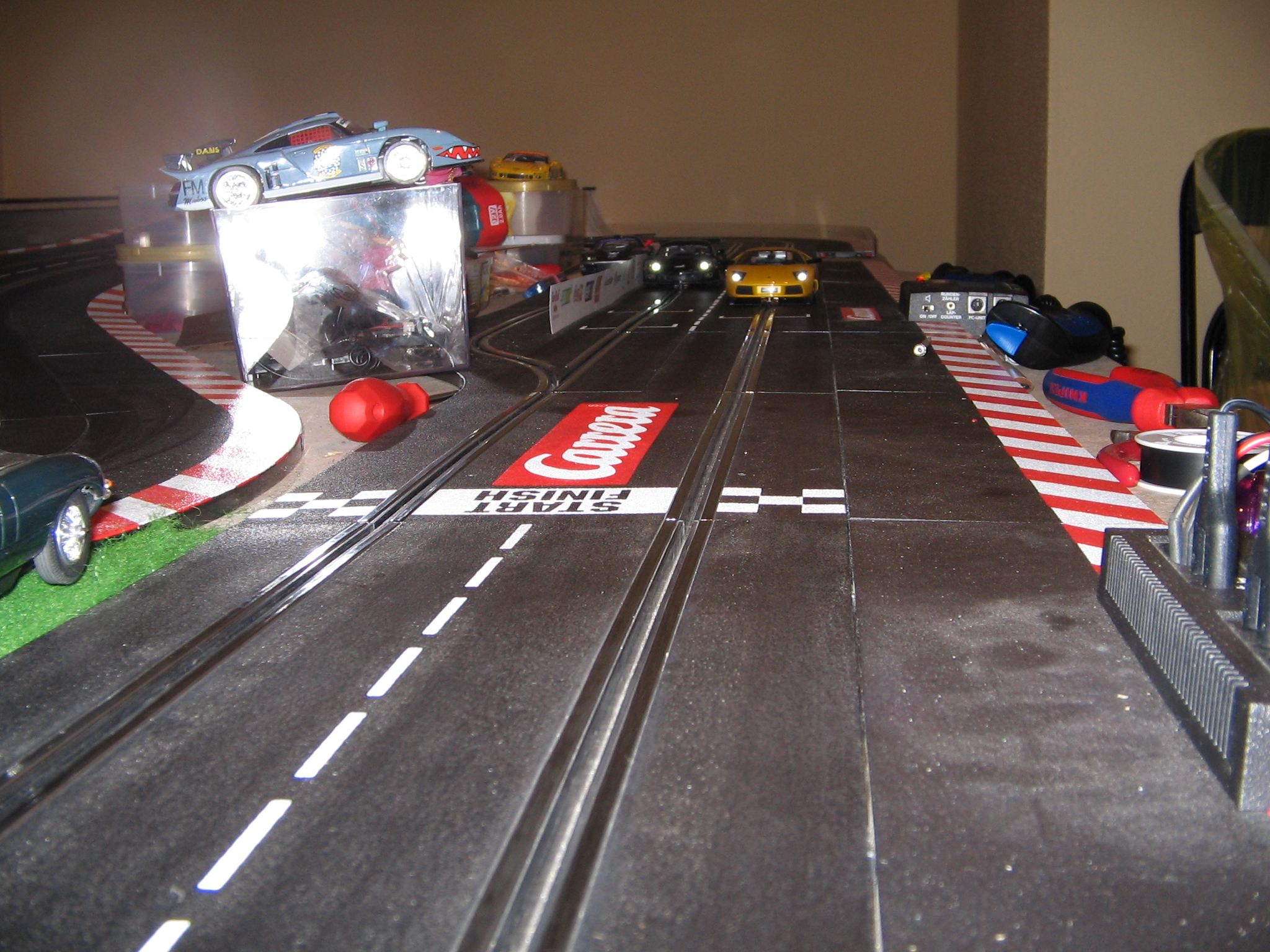 2008 wurde der erste Rheinland Raceway als Festaufbau verwirklicht. Beim Umstieg vom Fußboden wurde die Bahn auch gleich digitalisiert. Fotos, die ich aus der Zeit von damals noch finde, werde ich in diesem Beitrag posten. Ich fürchte aber, dass es soviele nicht sein werden.