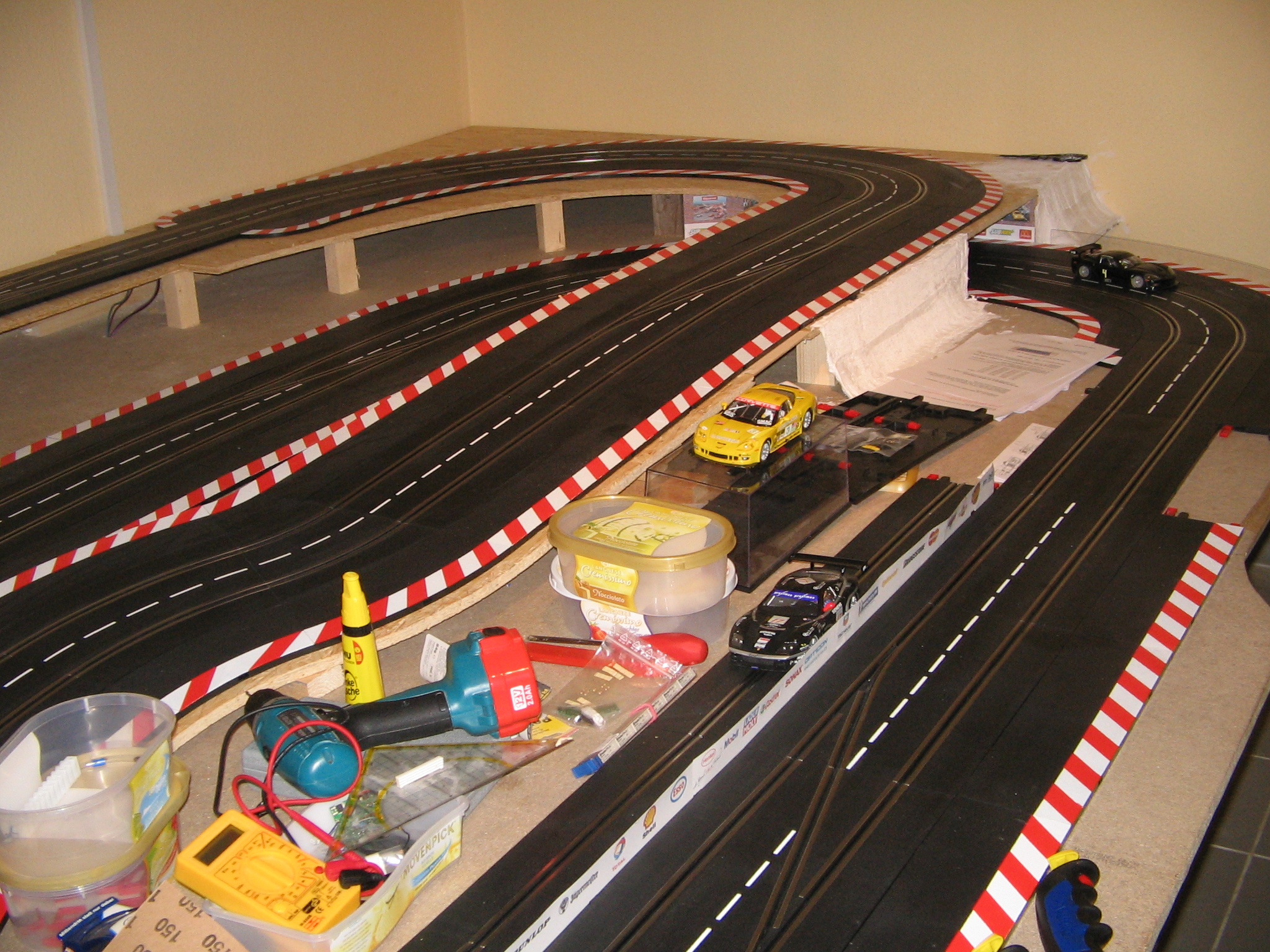 2008 wurde der erste Rheinland Raceway als Festaufbau verwirklicht. Beim Umstieg vom Fußboden wurde die Bahn auch gleich digitalisiert. Fotos, die ich aus der Zeit von damals noch finde, werde ich in diesem Beitrag posten. Ich fürchte aber, dass es soviele nicht sein werden.